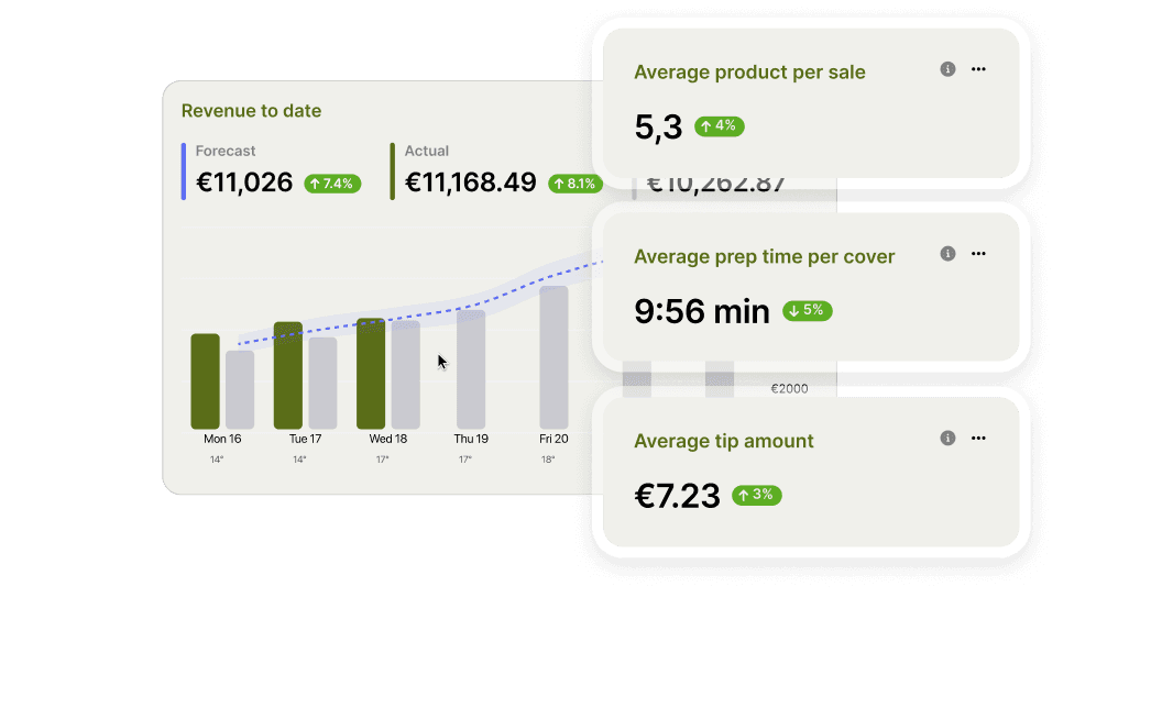 Sledujte, co se prodává v reálném čase, mějte přehled o trendech tržeb a včas rozpoznejte příležitosti k optimalizaci menu nebo cen. Díky okamžitým aktualizacím a přehledům roste váš podnik efektivně a s jistotou.