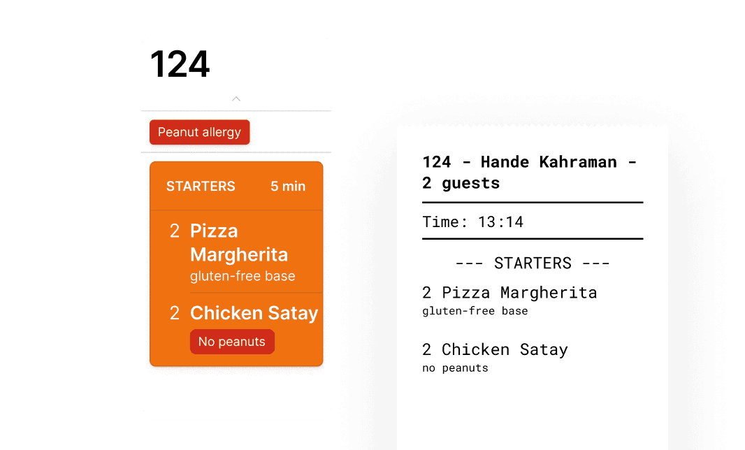 Objednávky bez chyb, pokaždé. Alergeny i úpravy položek jsou přehledně zobrazené na digitálních i tištěných objednávacích lístcích.