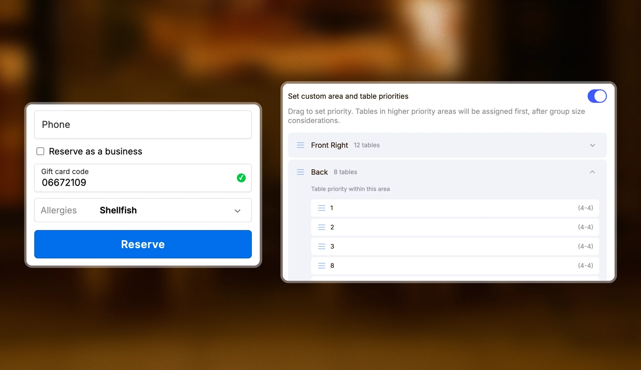 • Seating priorities: Guide which tables fill first by setting seating priorities for your floor.