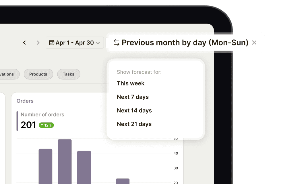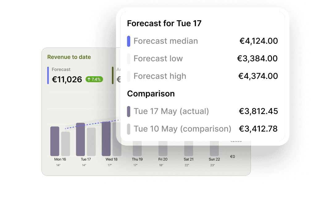Voorspel je inkomsten met omzetprognoses voor de volgende 7, 14 of 21 dagen.